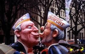Een belangrijke Duitse schrijver, Goethe, had een boekje geschreven over de Romeinse carnaval die hij gezien had in 1788. Dit boekje bracht de schrijvers op verschillende ideeën en sommige personen die in dit boek voorkwamen liepen ook mee in de optocht van Keulen.De schrijvers wilden net zo een mooie stoet door de stad laten gaan en daarmee hun nieuwe baas (Pruisen) voor gek zetten. Het hoogtepunt van deze optocht was de wagen van "Held Karneval".